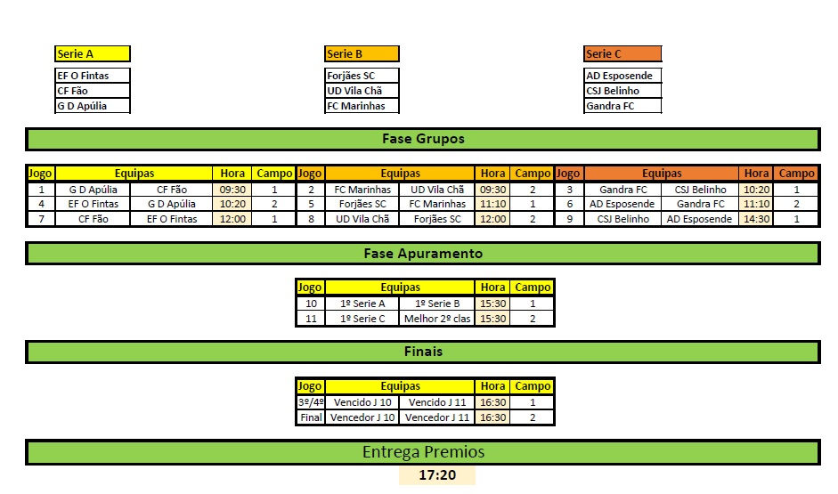 O torneio será disputado por nove equipas dos Clubes/Associações do concelho, nomeadamente GD Apúlia, Gandra FC, CF Fão, AD Esposende, FC Marinhas, EF "O Fintas", Forjães SC, União Desportiva de Vila Chã e CSJ Belinho, num total de cerca de 150 pais e encarregados de educação dos atletas inscritos no Campeonato Concelhio de Futebol Infantil